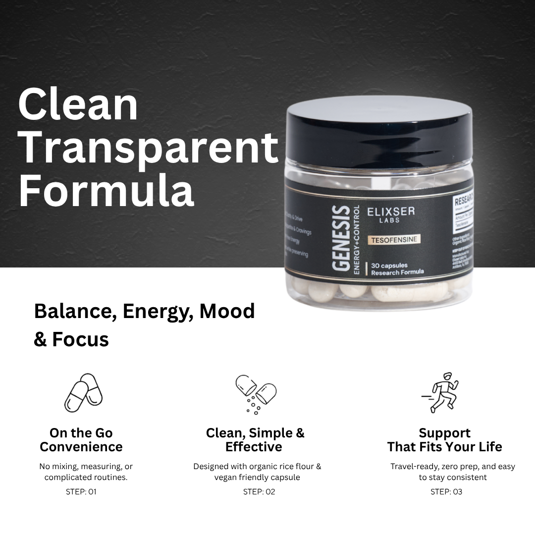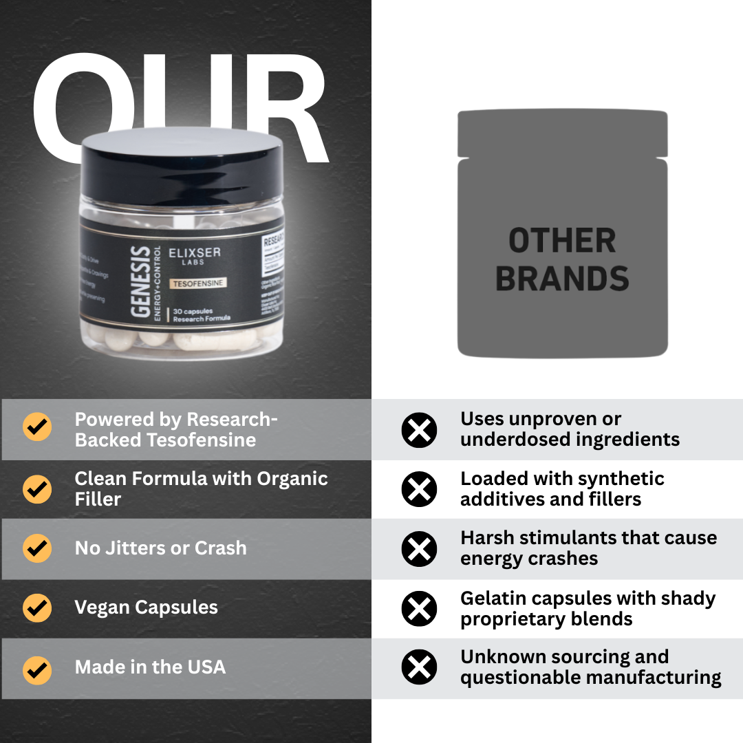 At Elixser, we prioritize quality, purity, and transparency. Each Genesis capsule is formulated with 99.9% pure Tesofensine and organic rice flour free from artificial fillers or unnecessary additives. Our products are manufactured in an FDA-registered, GMP-certified facility in the USA and third-party tested to ensure consistency and integrity for your research needs.