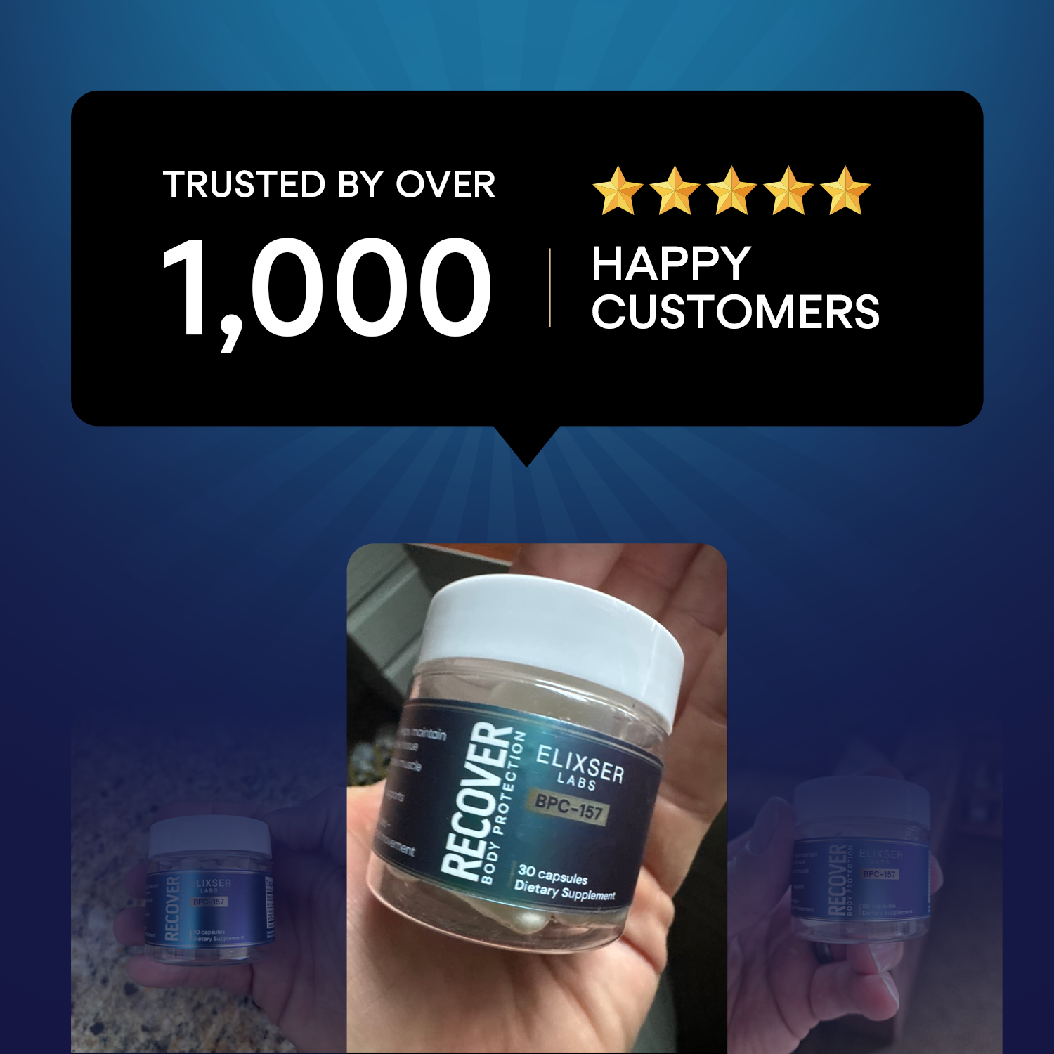 We don’t cut corners and neither should you. That’s why every Elixser capsule contains 99.9% pure peptides with zero fillers and nothing artificial ever. Each batch is third-party lab tested for quality and consistency, and every bottle is made in an FDA-registered, GMP-certified facility right here in the USA because your recovery deserves nothing less.